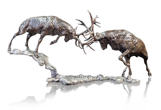 Dawn Duel - Rutting Stags Bronze and Stainless Steel Sculpture - edition 118/150