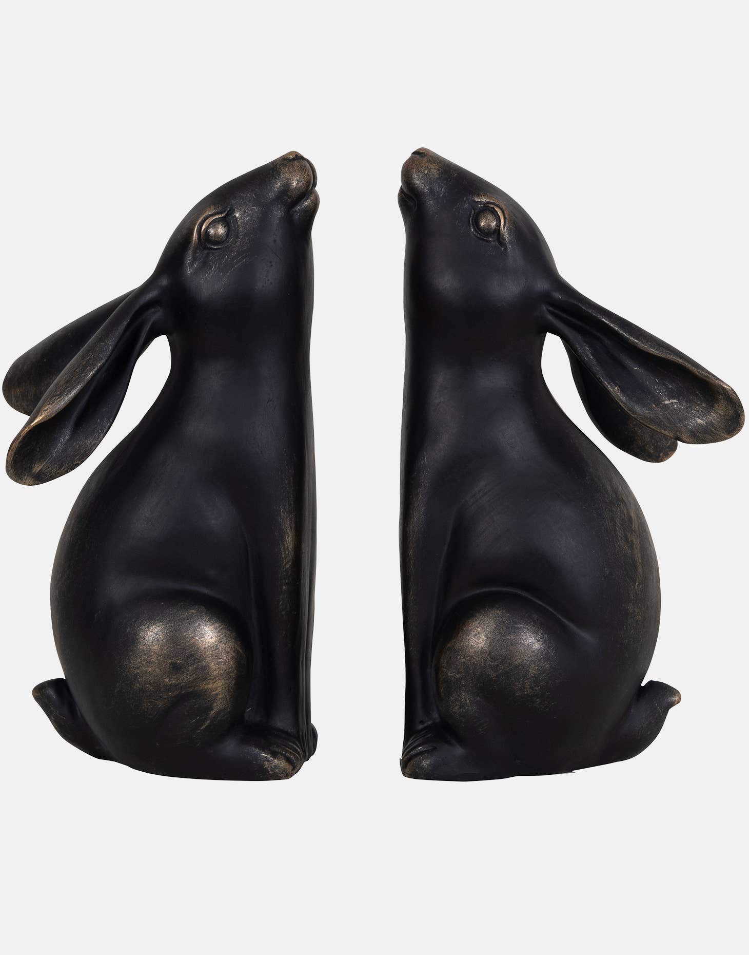 This pair of moongazing hares are cast in smooth bronze finish resin. The moon gazing hare is associated with positive energies such as growth re-birth, and new beginnings.